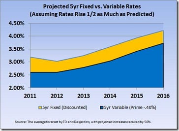 yea not bad advice..thanx…thinking about it but when one is at 2.5 on the variable and my current mortgage lender aint giving such good rates i’m looking at ducking out early, find a new lender, paying a penalty etc etc…i think i will ride it out for a bit…i think carney is just trying to scare folks with his constant chatter of raising rates…no one else in the world is..i’m not so much predicting rates as just riding with a sure thing — for now…