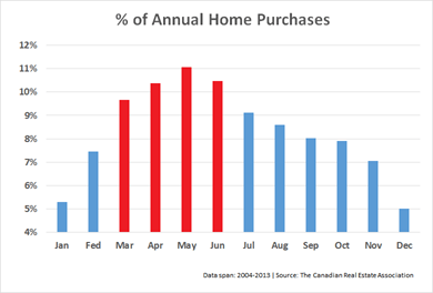May is the No. 1 home-buying month in Canada. If you consider that real estate purchases typically close in 45-60 days, it explains why: