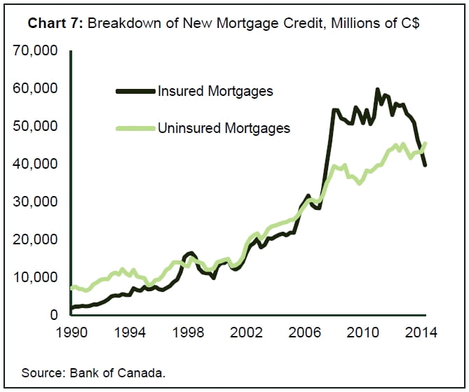 Mortgage rule changes: Government mortgage tightening curtailed the number of mortgages being insured and increased the cost of, and/or restrictions on, certain uninsured financing.