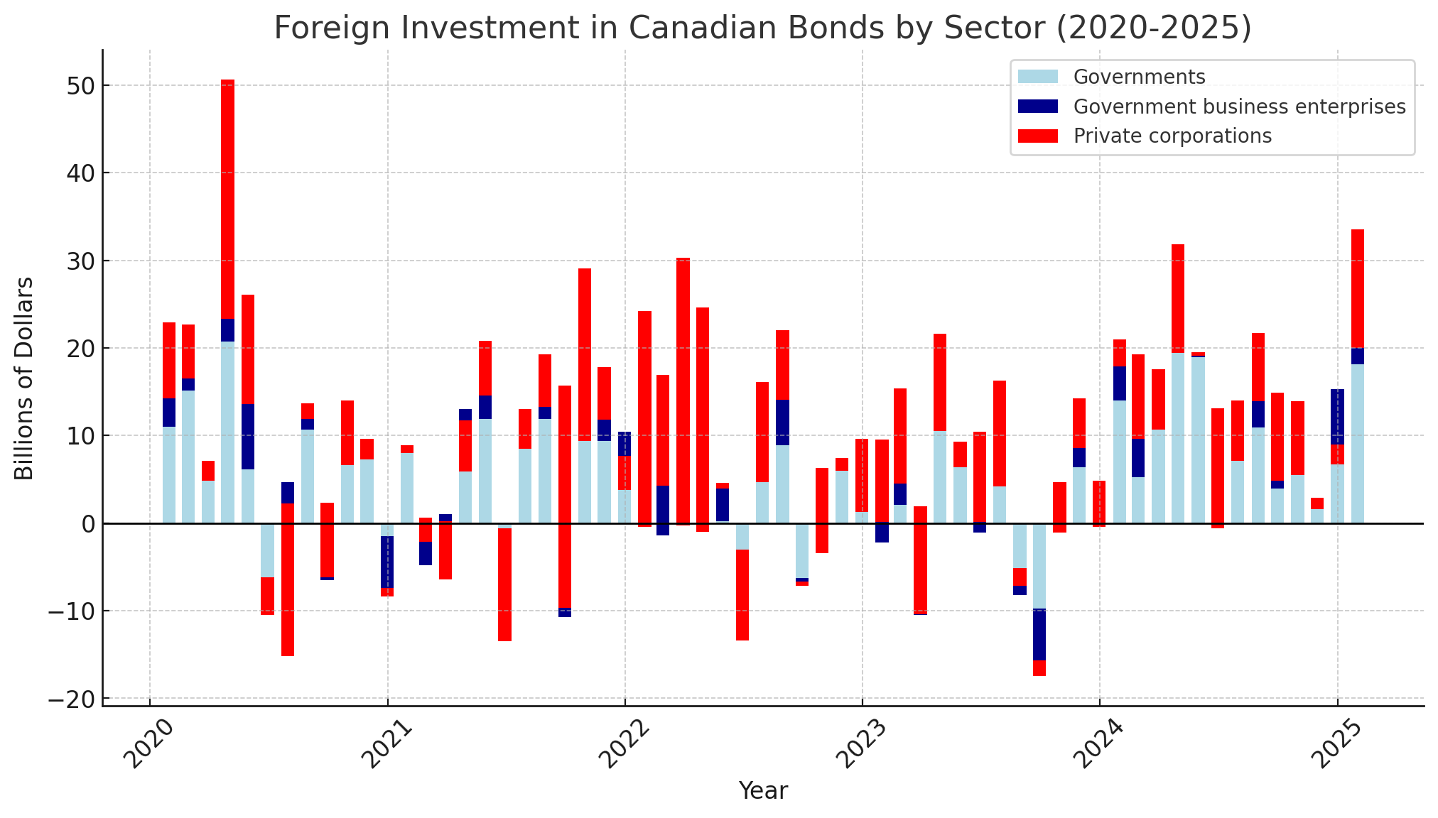 Foreign investment in Canadian bonds, by sector of issuer